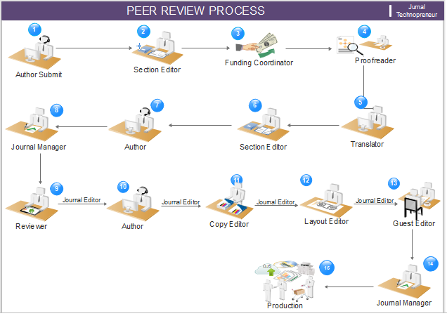 Journal of Technopreneur (Technology & Entrepreneur)published the only paper strictly following JTech guidelines and template for preparation manuscript. All submitted manuscripts are going through a double-blind peer review process. Those papers are read by editorial members (upon field of specialization) and will be screened by Managing Editor to meet necessary criteria of JTech publication. Manuscripts will be sent to two reviewers based on their historical experience in reviewing manuscript or based on their field of specialisation. JTech has reviewing forms in order to keep same items reviewed by two reviewers. Then editorial board make a decision upon the reviewers comments or advice. Reviewers give their assessment on originality, clarity of presentation, contribution to the field/science, JTech has four kind of decisions: Accepted, as it is Accepted by Minor Revisions (let authors revised with stipulated time) Accepted by Major Revisions (let authors revised with stipulated time) Rejected (generally, on grounds of outside of scope and aim, major technical description problems, lack of clarity of presentation) For checking Plagiarism, JTech Editorial Board will screen plagiarism with using Ithenticate Program. If it is found plagiarism indication (above 27%), editorial board will reject manuscript immediately.